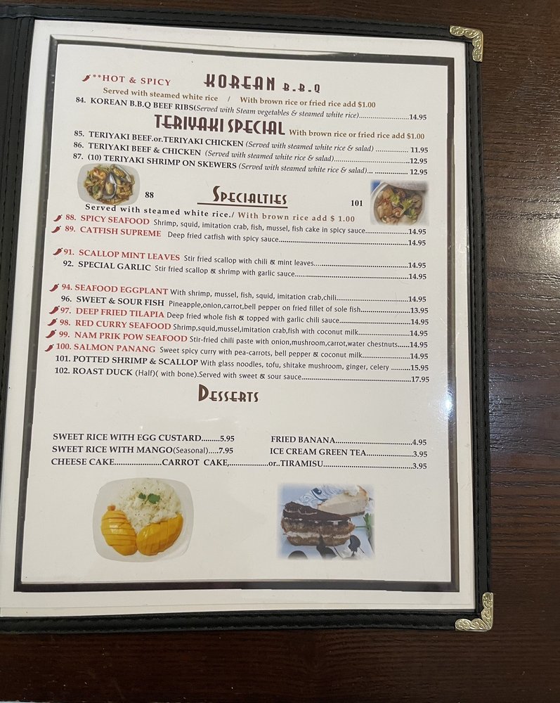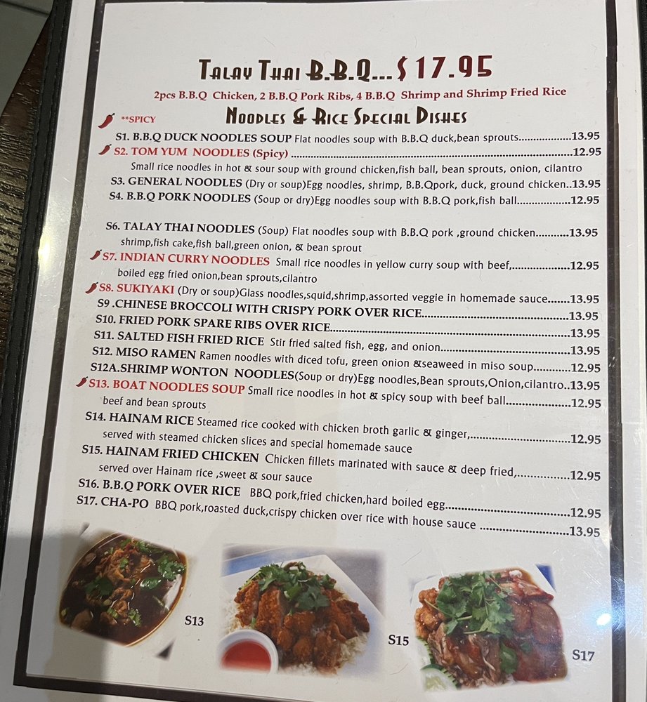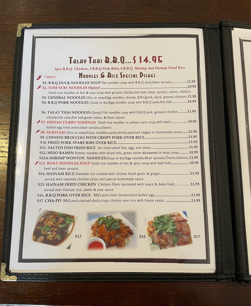 Introducing the menu at Talay Thai Restaurant: